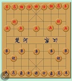 棋子活动的场所,叫作“棋盘”。在长方形的平面上,绘有九条平行的竖线和十条平行的横线相交组成,共有九十个交叉点。棋子共有三十二个,分为红黑两组,各有十六个,由对弈的双方各执一组。帅与将;仕与士;相与象;兵与卒的作用完全相同,仅仅是为了区别红棋和黑棋而已。