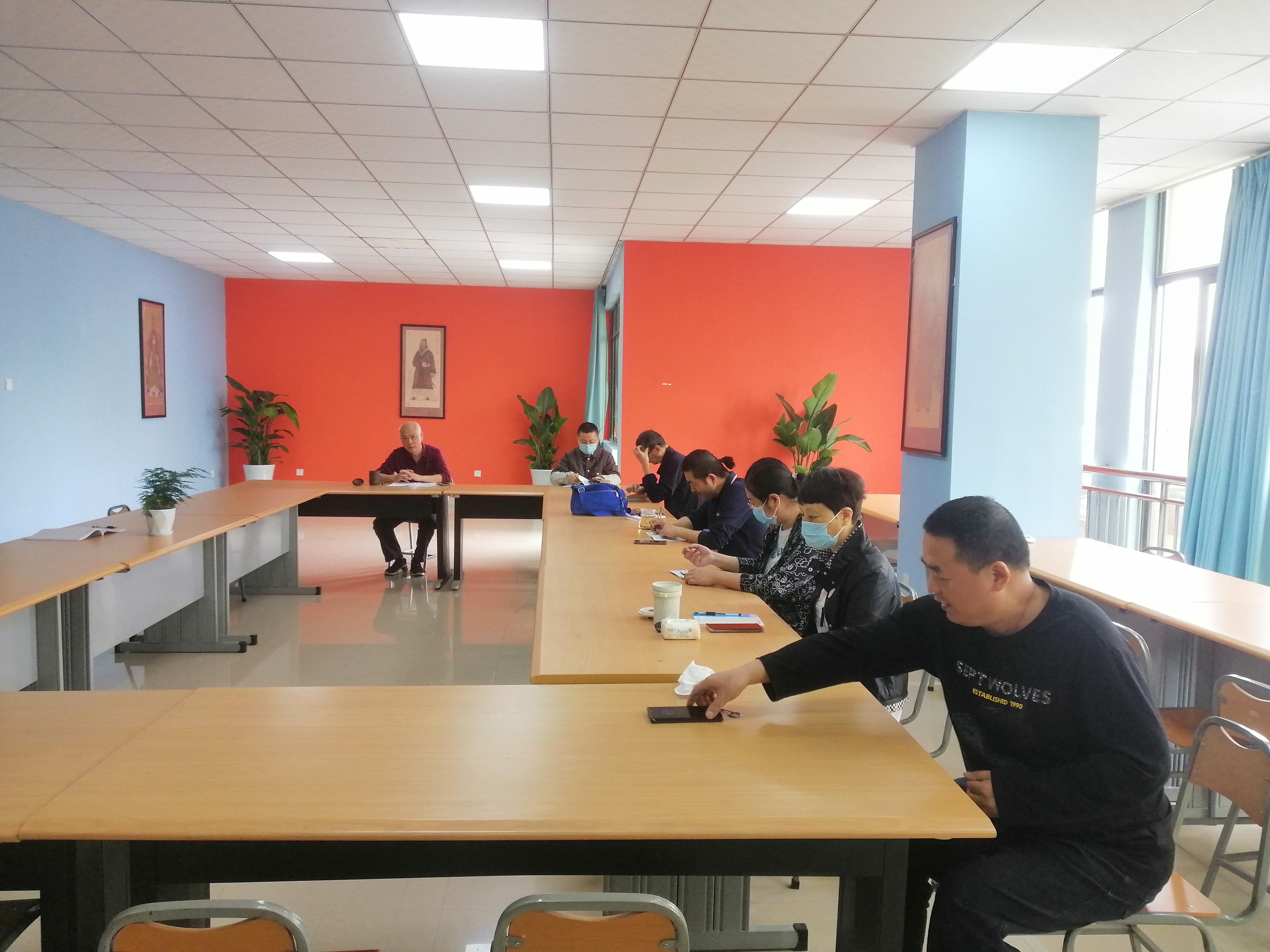 会议分为两个阶段,第一阶段,图书馆馆长强化了现阶段疫情防控的要求,特别是对五一放假期间的防控工作作了具体安排、部署,要求大家牢固树立防疫意识,认真做好防控措施;强调了意识形态工作,要求每一位馆员牢固树立角色意识,教书育人,传播正能量;再次强调了节日期间的安全工作,对值班人员安全责任、馆员出行安全等作了具体要求;对部门国有资产的管理进行了强调。会议第二阶段,按部门工作计划,由杨浩老师作专题学习、交流。杨老师以“医”字为主题,给大家介绍了医字的演化、结构、传统汉字的具象表达内涵,并强调了传统汉字,繁体字的文化传承功能。